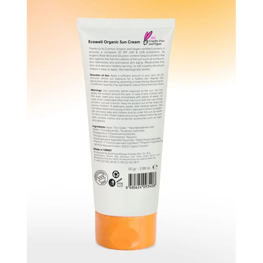 Ecowell Organik Güneş Kremi SPF 50, mineral filtrelerle güçlendirilmiş içeriği sayesinde UVA ve UVB koruması sağlar. Organik aloe vera ve gliserin ile zenginleştirilmiş formülü cildi nemlendirir, yatıştırır ve güneş altında konfor sağlar.